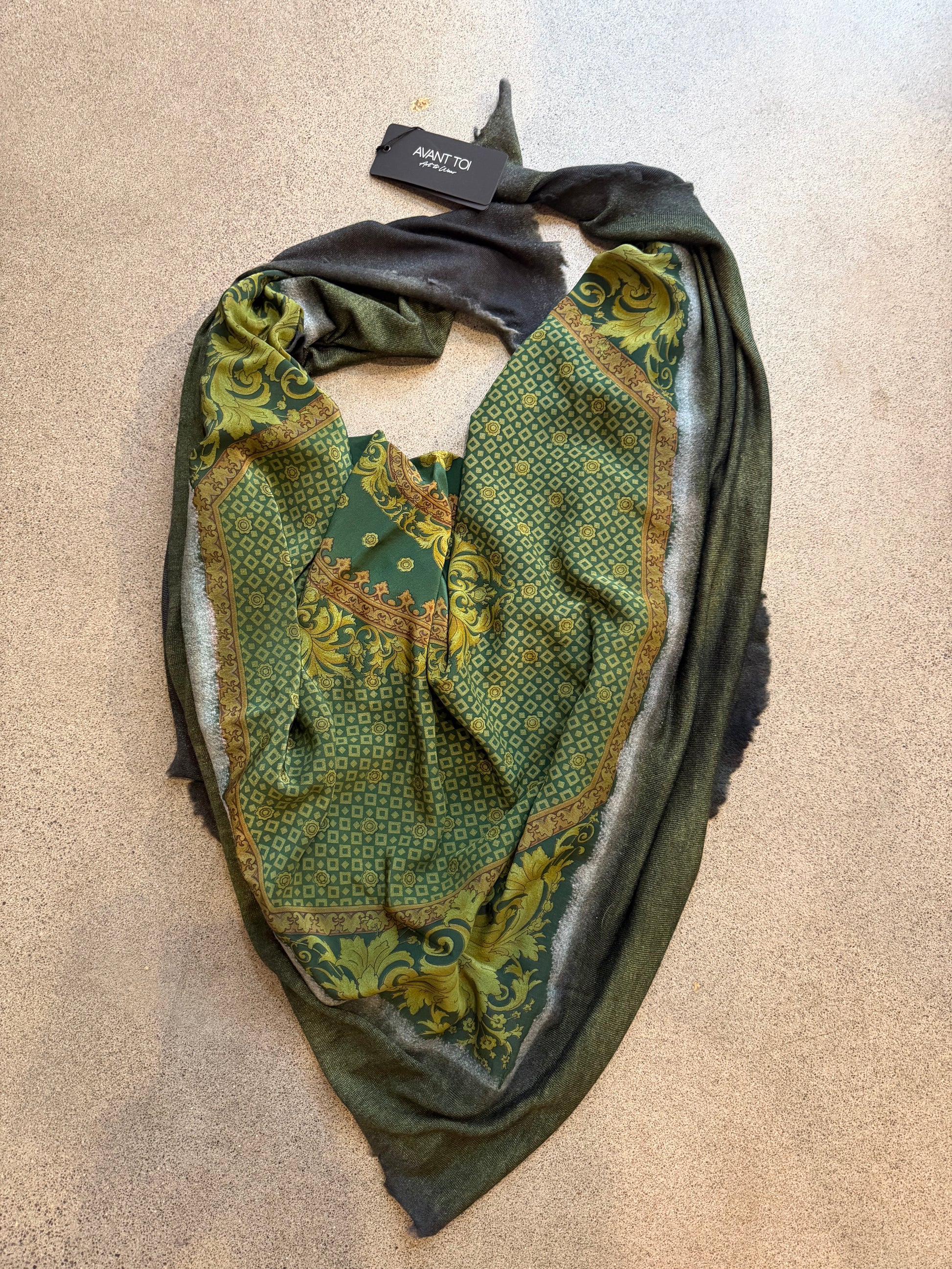 100% Silk center w/ 70% Cashmere/30% Silk Border