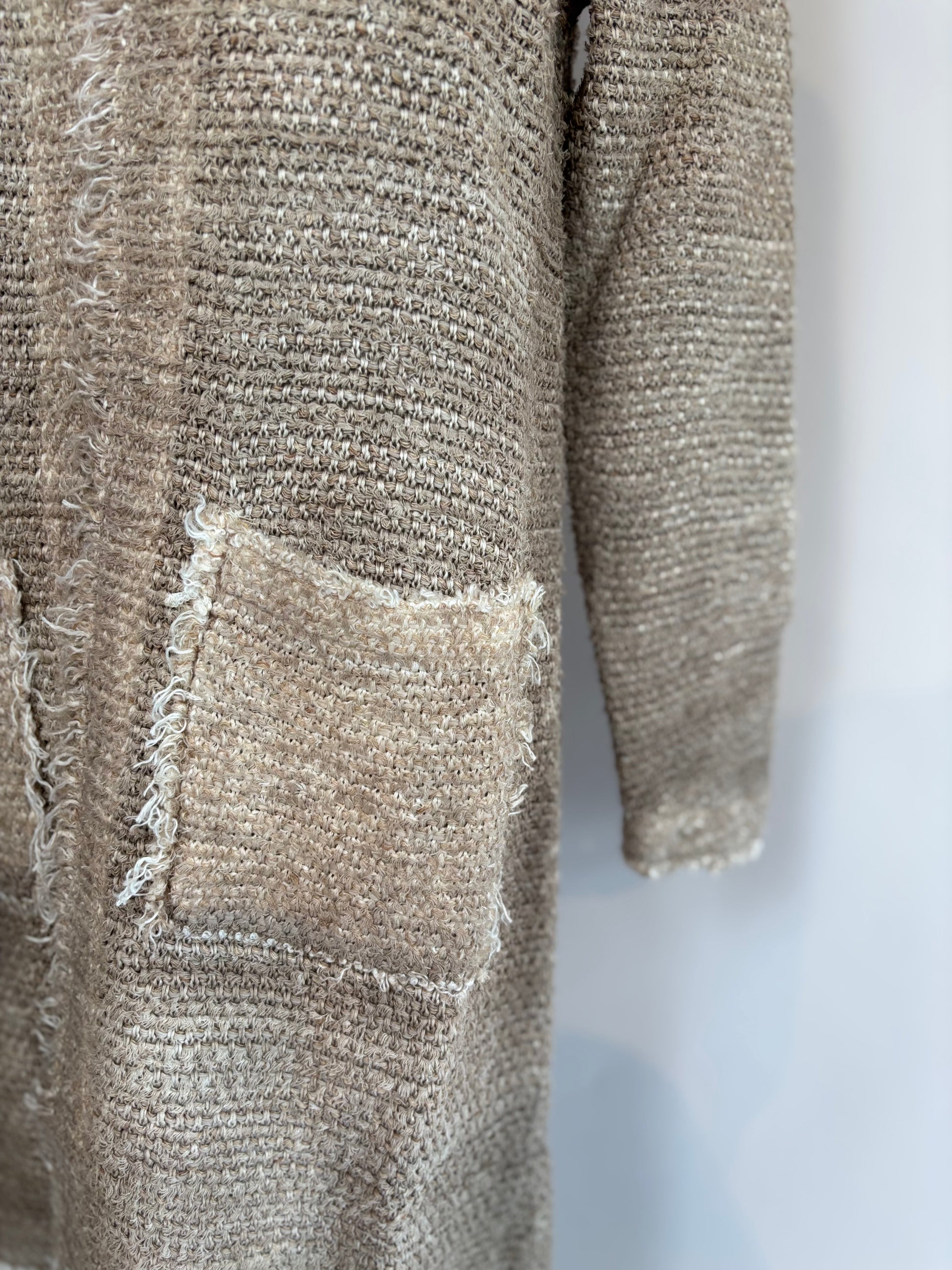 Buttonless front with round neck and fringed edges