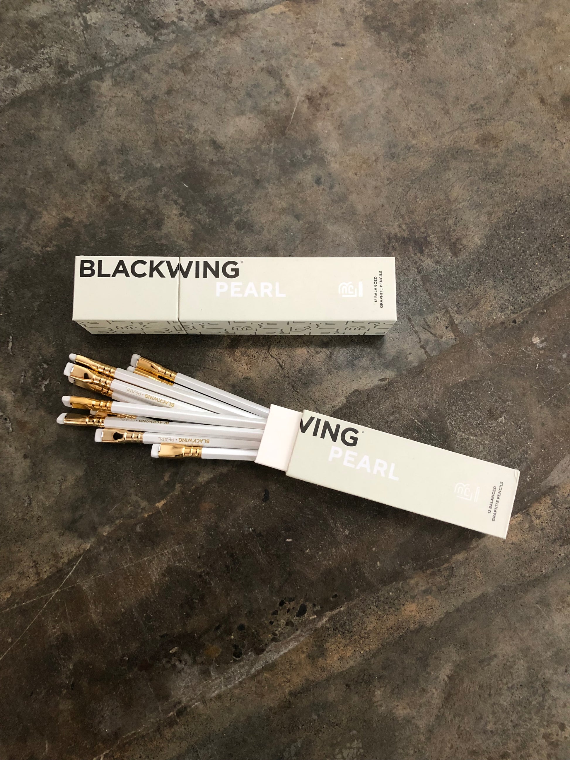 Classic pearl white finish, iconic square Blackwing ferrule and white eraser