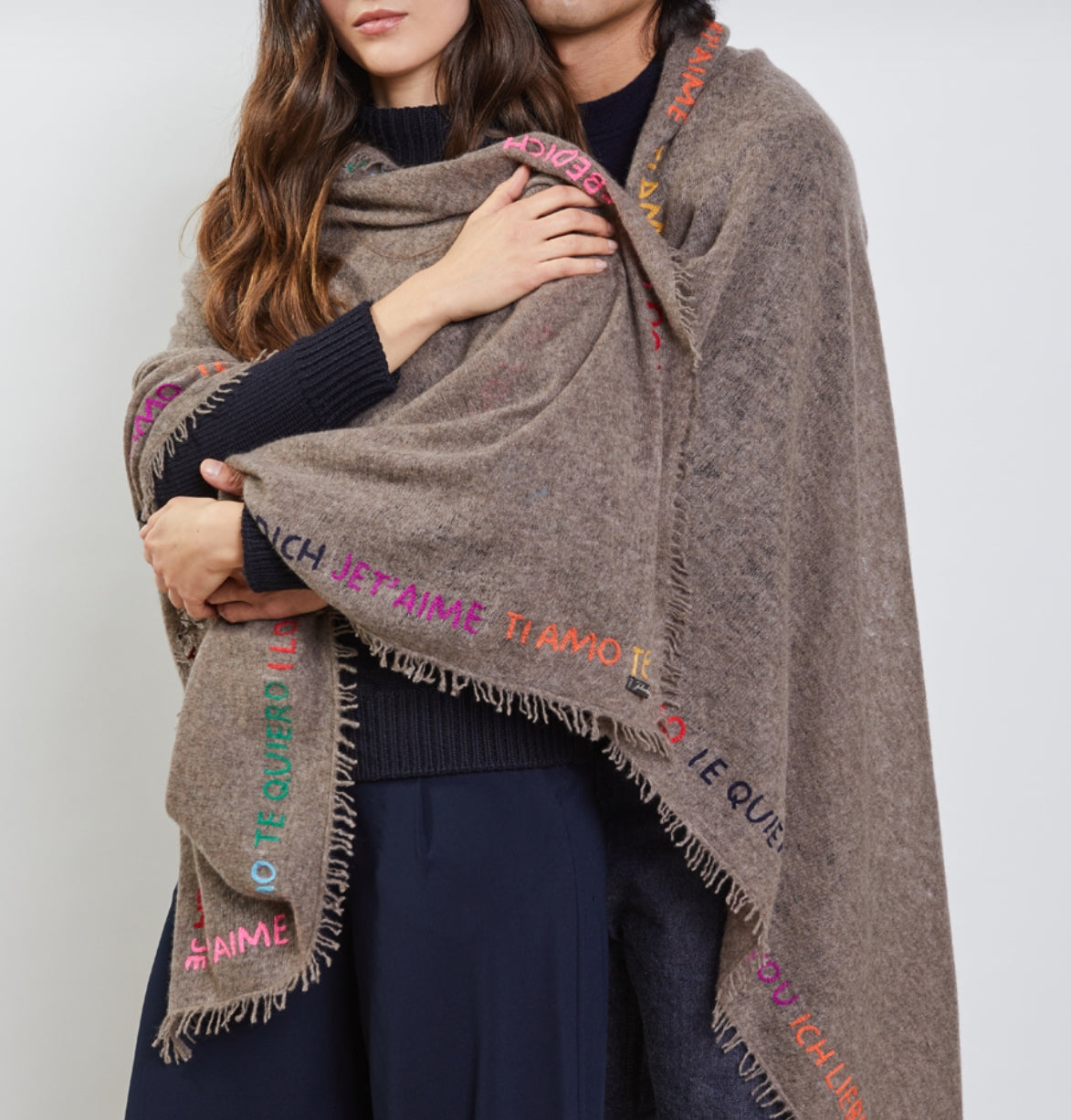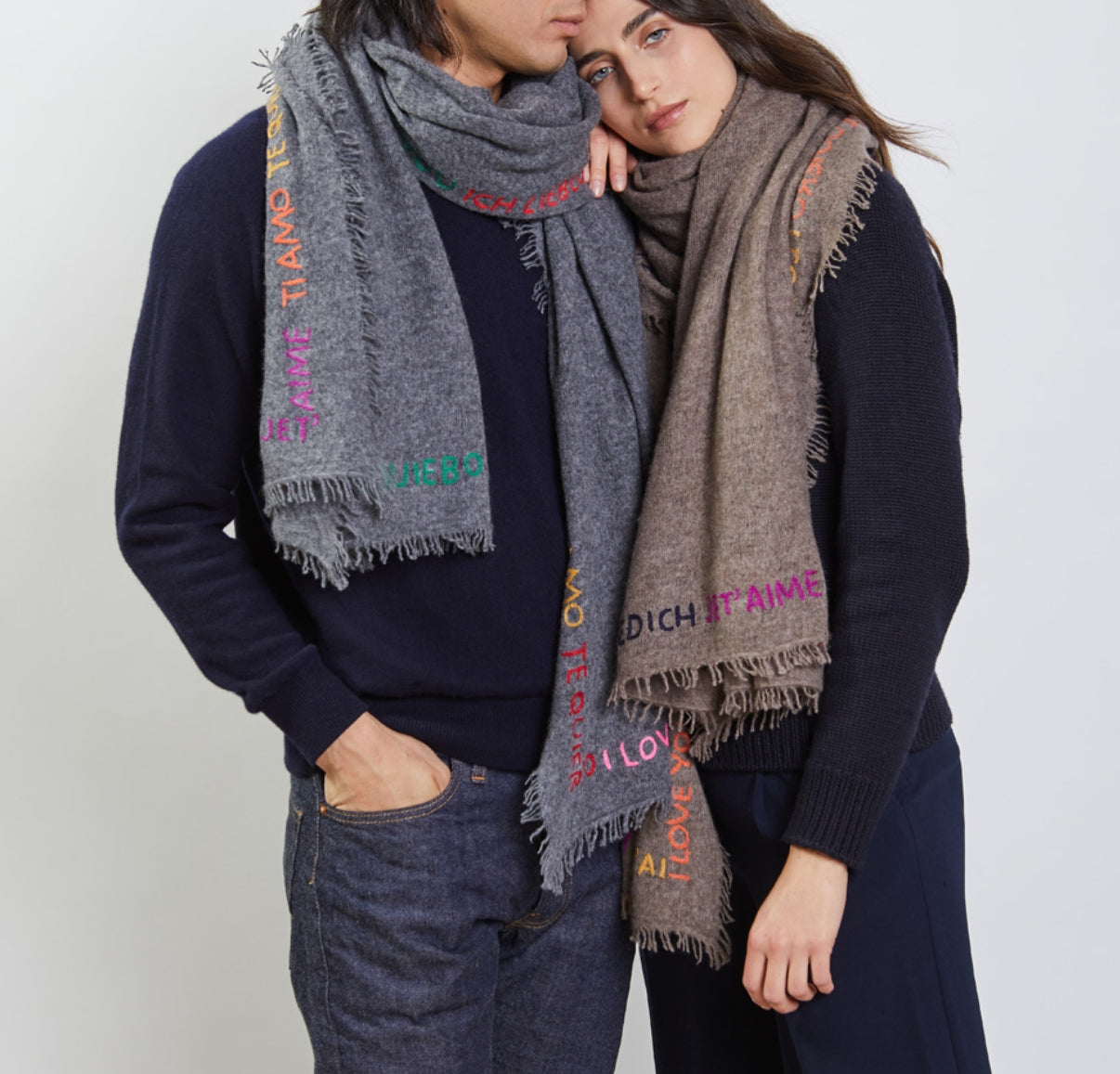 Cashmere scarf with "I love you" embroidery in different languages