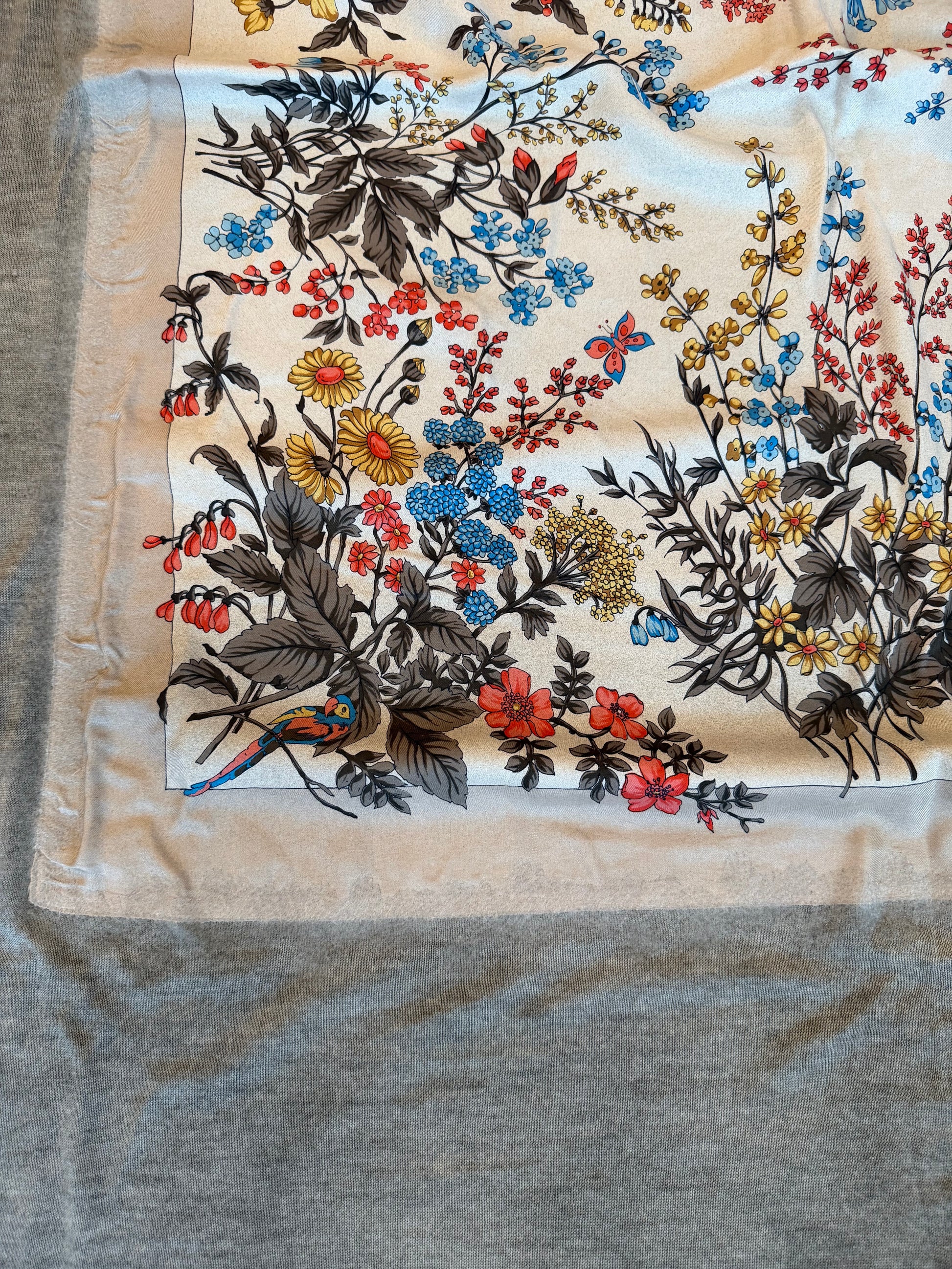 Jumbo Vintage Silk Scarf with Cashmere Boarder