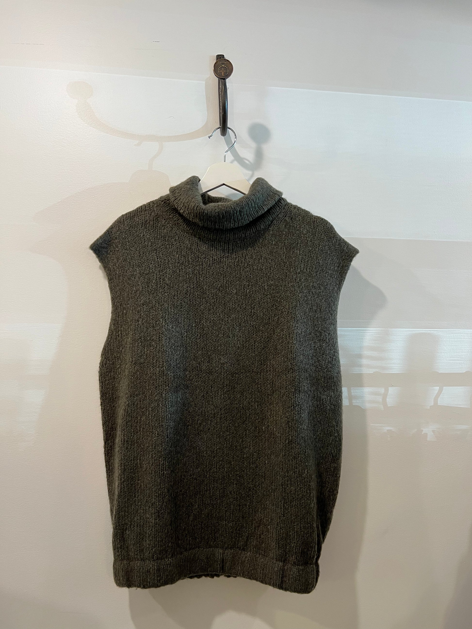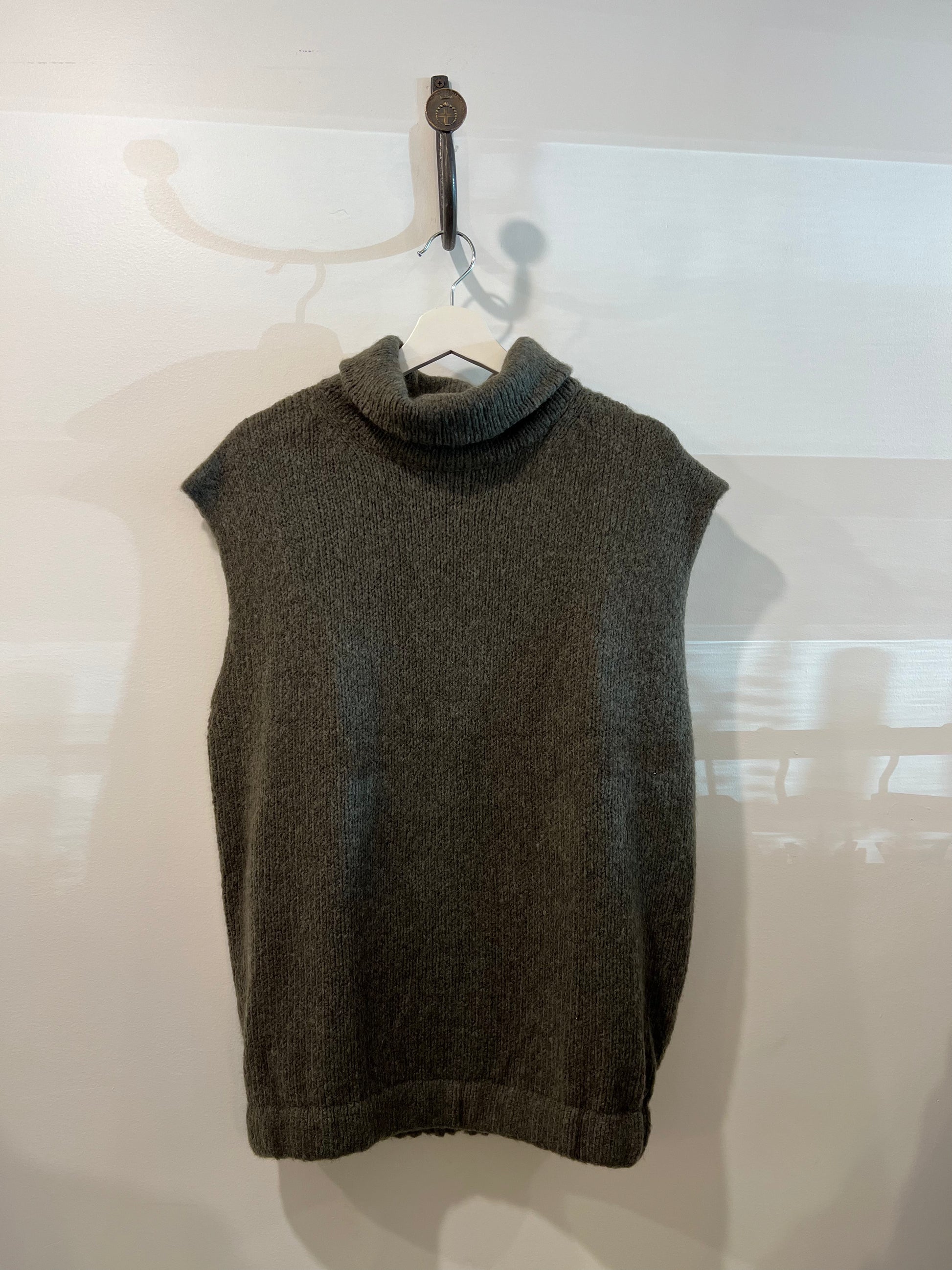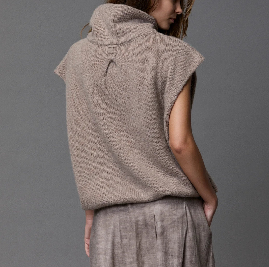 Chunky sleeveless knit in a soft cashmere-wool blend with a relaxed turtleneck collar. Perfect for layering!