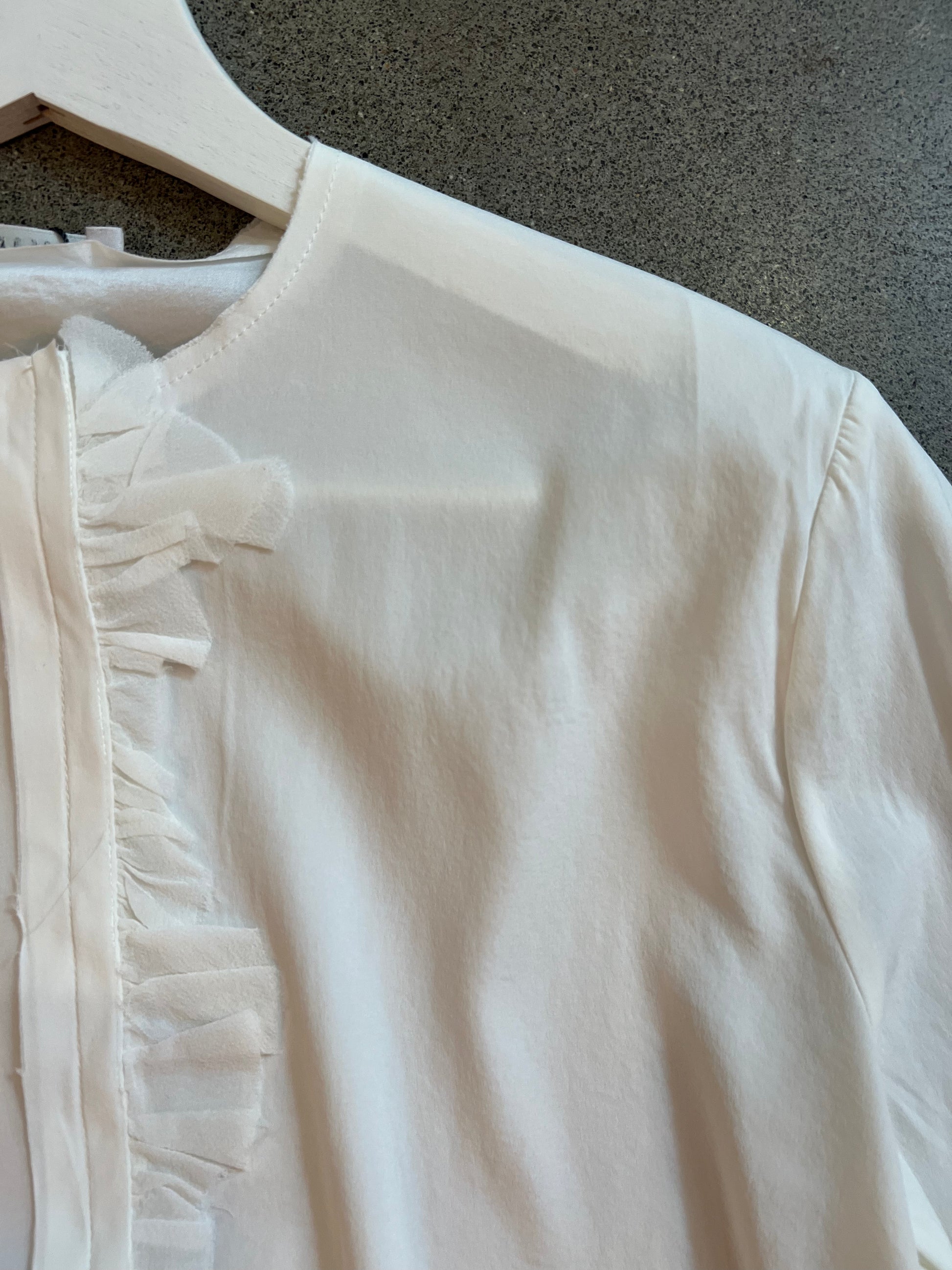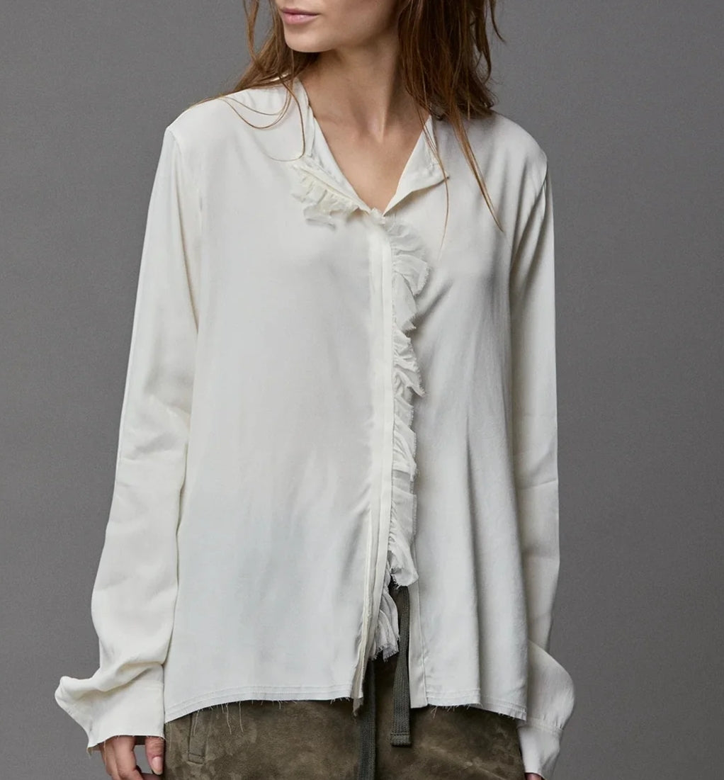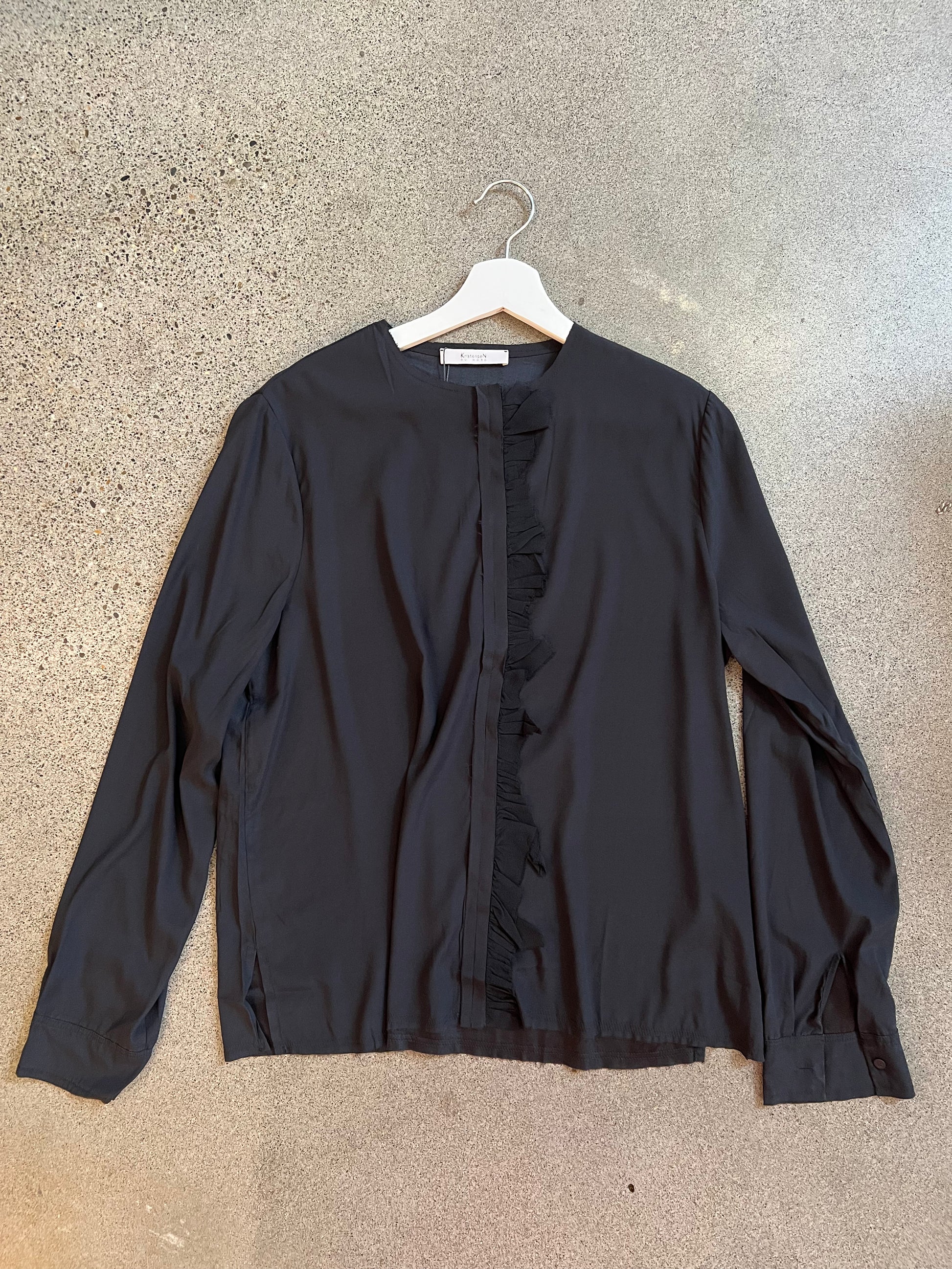 Kristensen Du Nord - Silk Satin Frill Shirt in Black or White