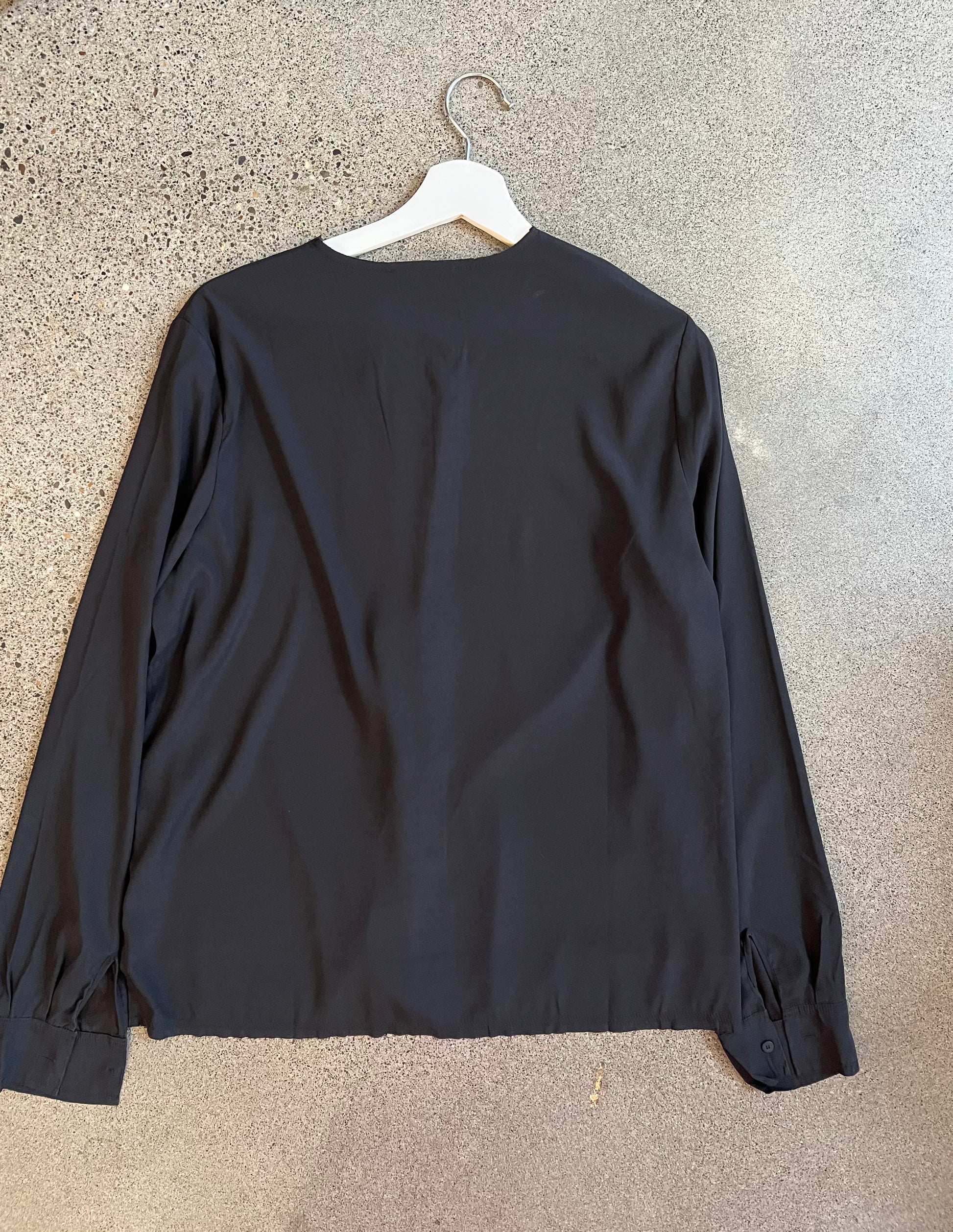 ** Tuck into a high waisted denim or pair with a skirt, under a blazer for Fall season. This is the one and only silk blouse you need.