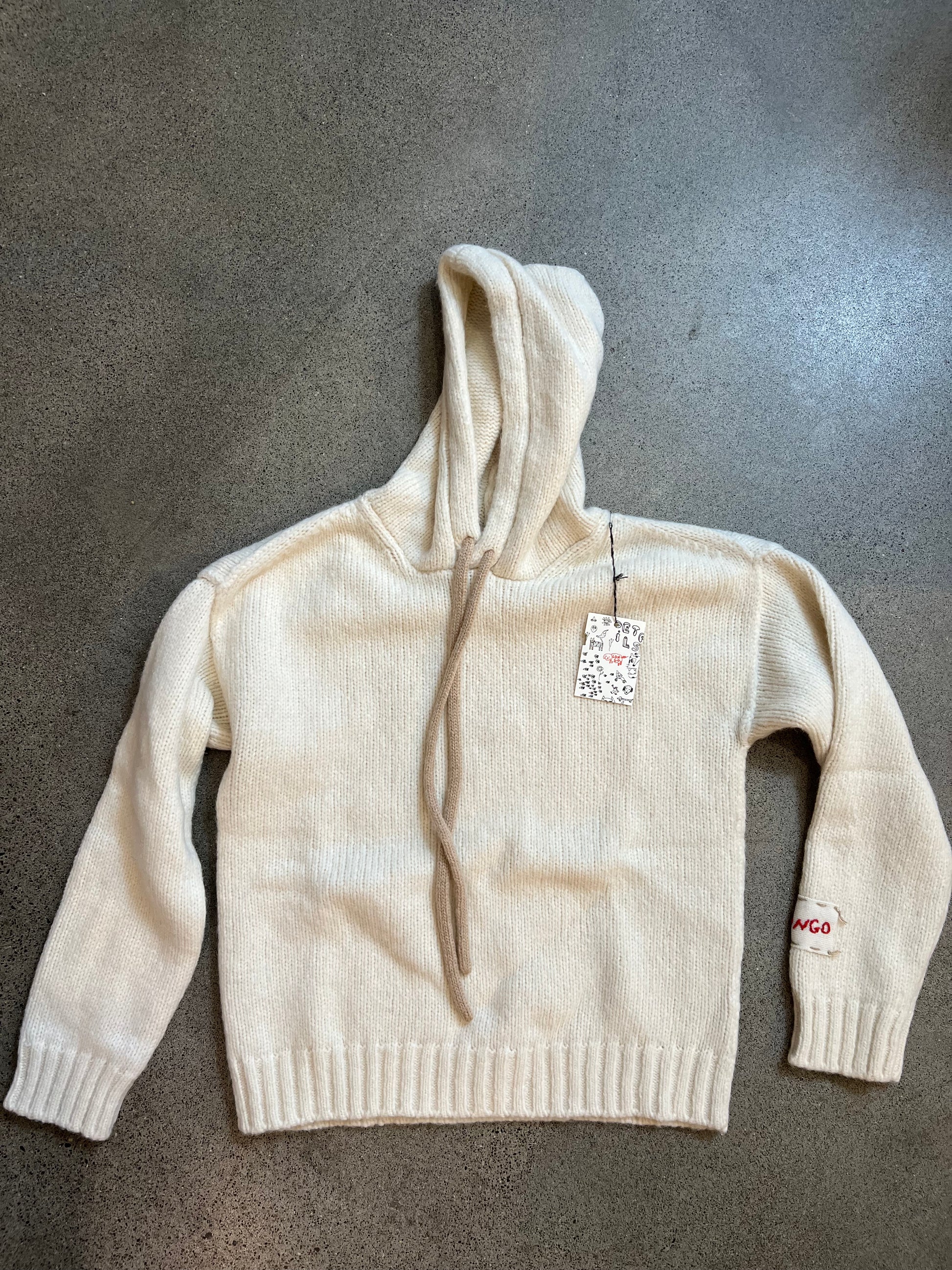 Thick woven drawstrings at hood