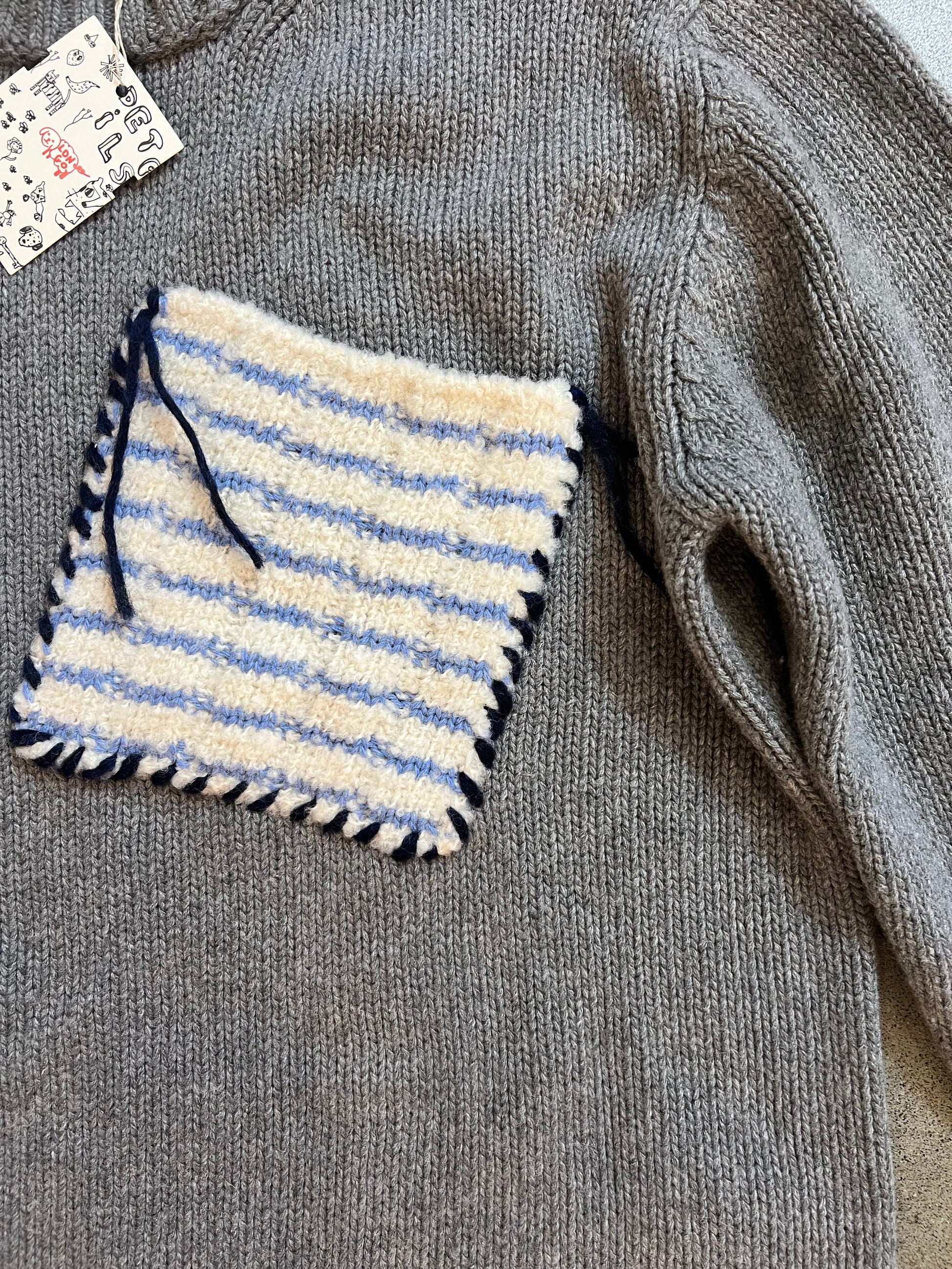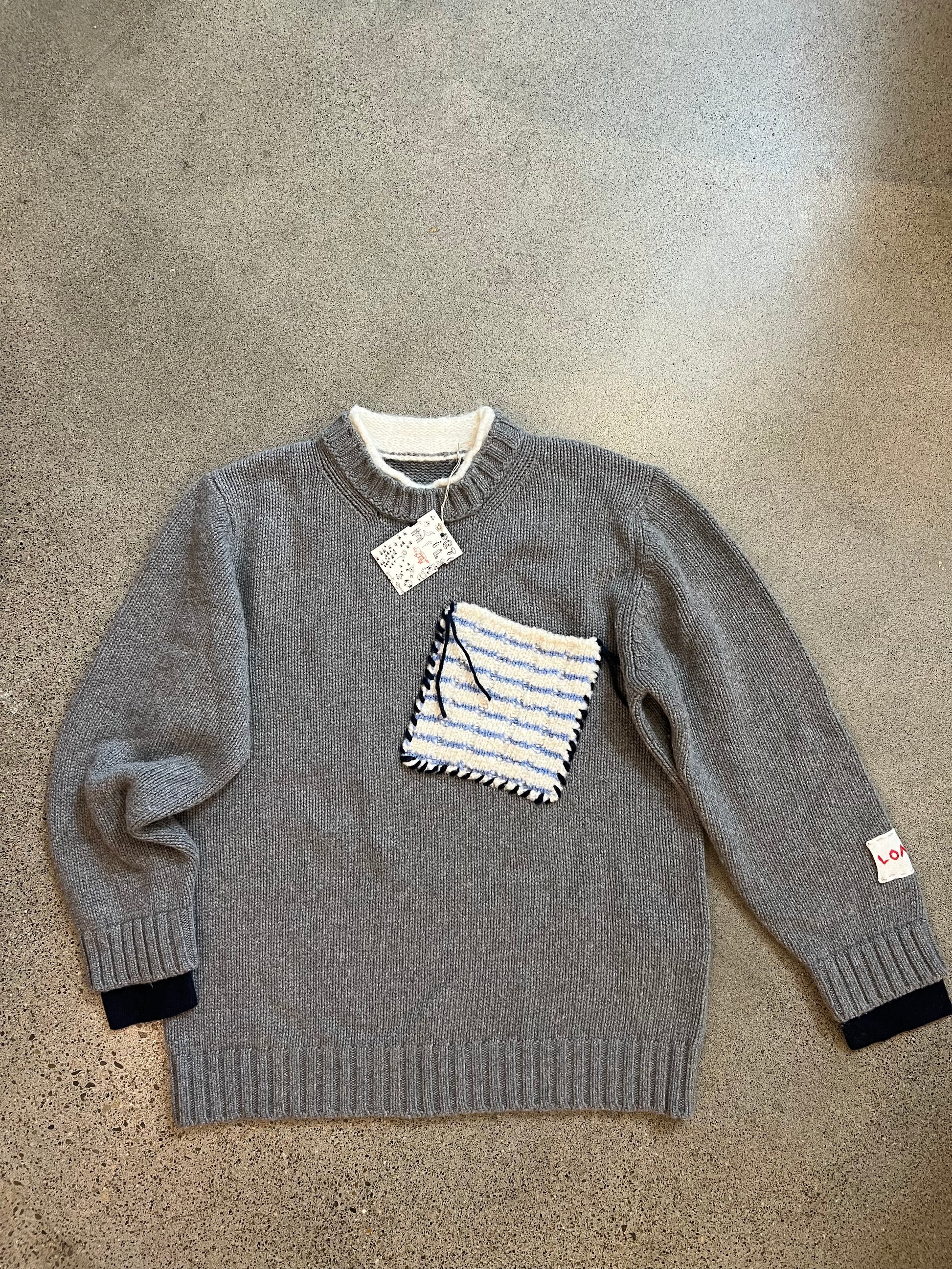 Longo - Gray Striped Patch Pocket Sweater