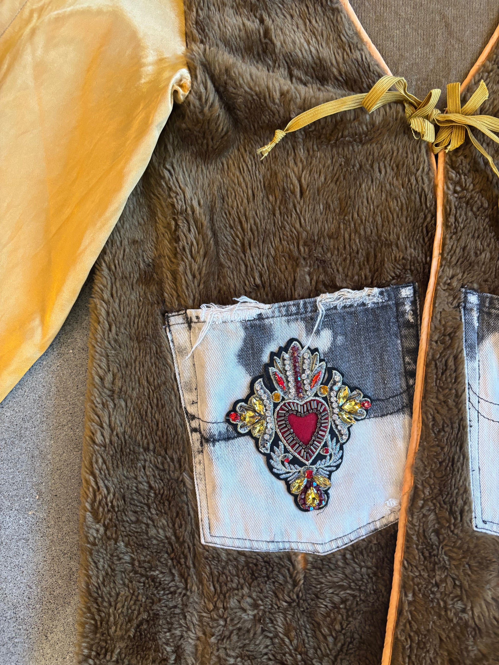 Origami Crane - Chestnut Sherpa Liner Coat w/ Bedazzle