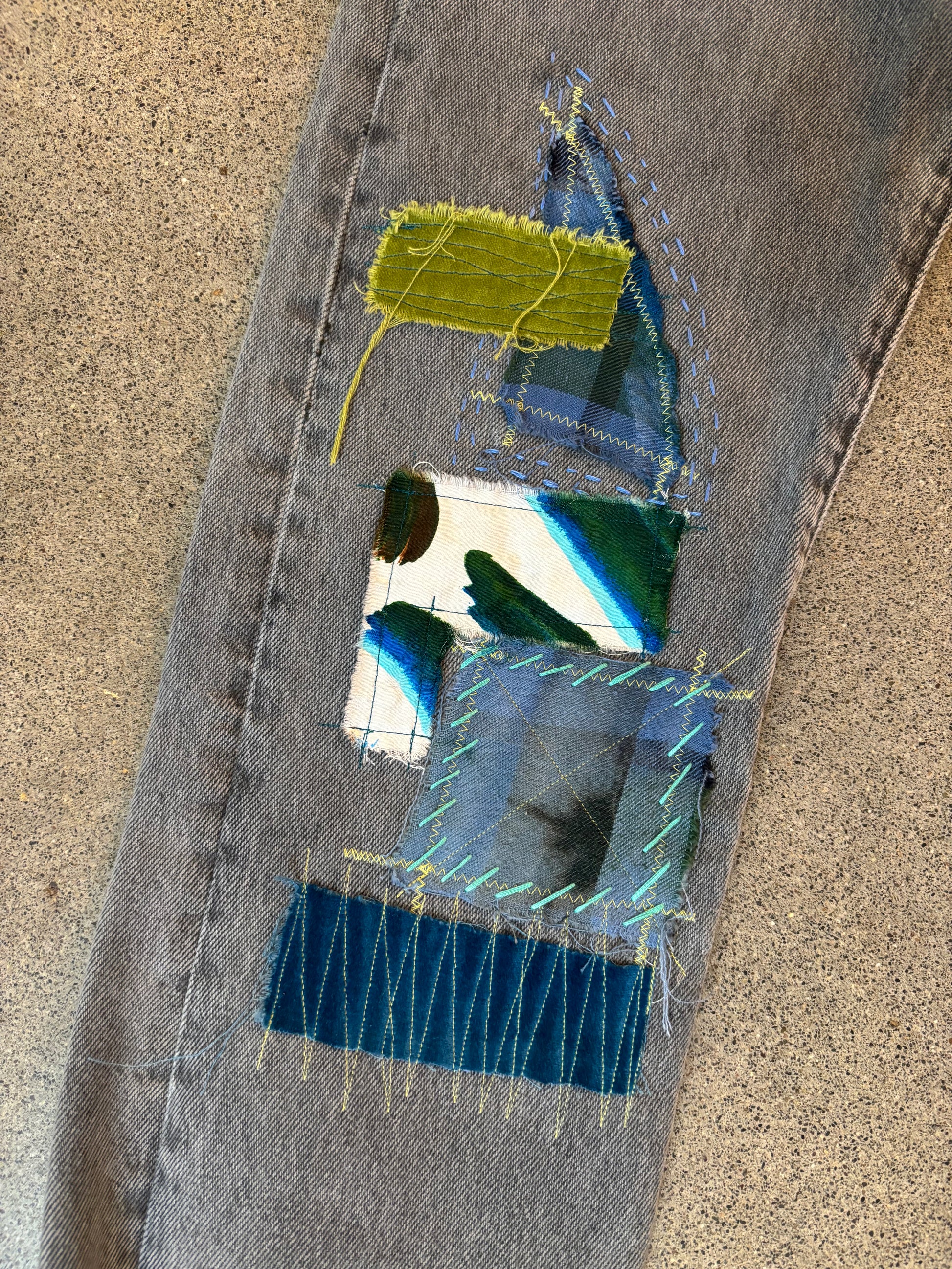 Vintage upcycled Levi's with embroidery, patches, and distressing