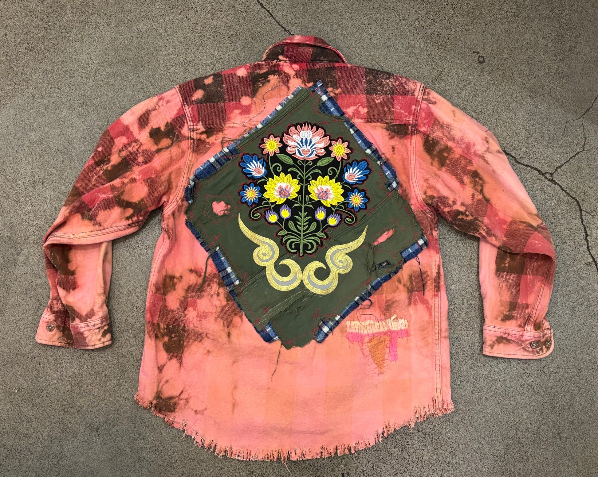 Origami Crane - Long Overdyed Pink Flannel w/ Flower Patch