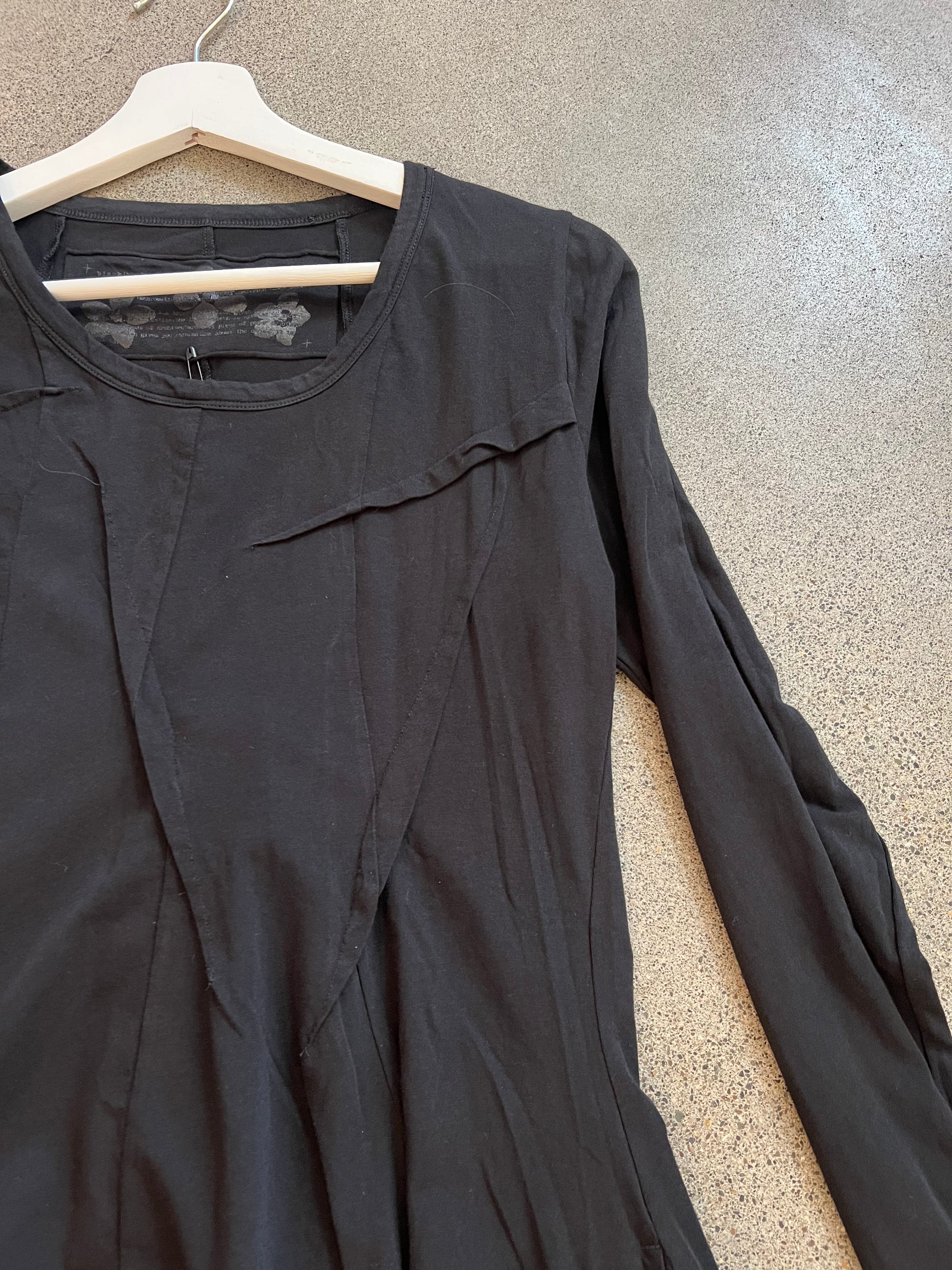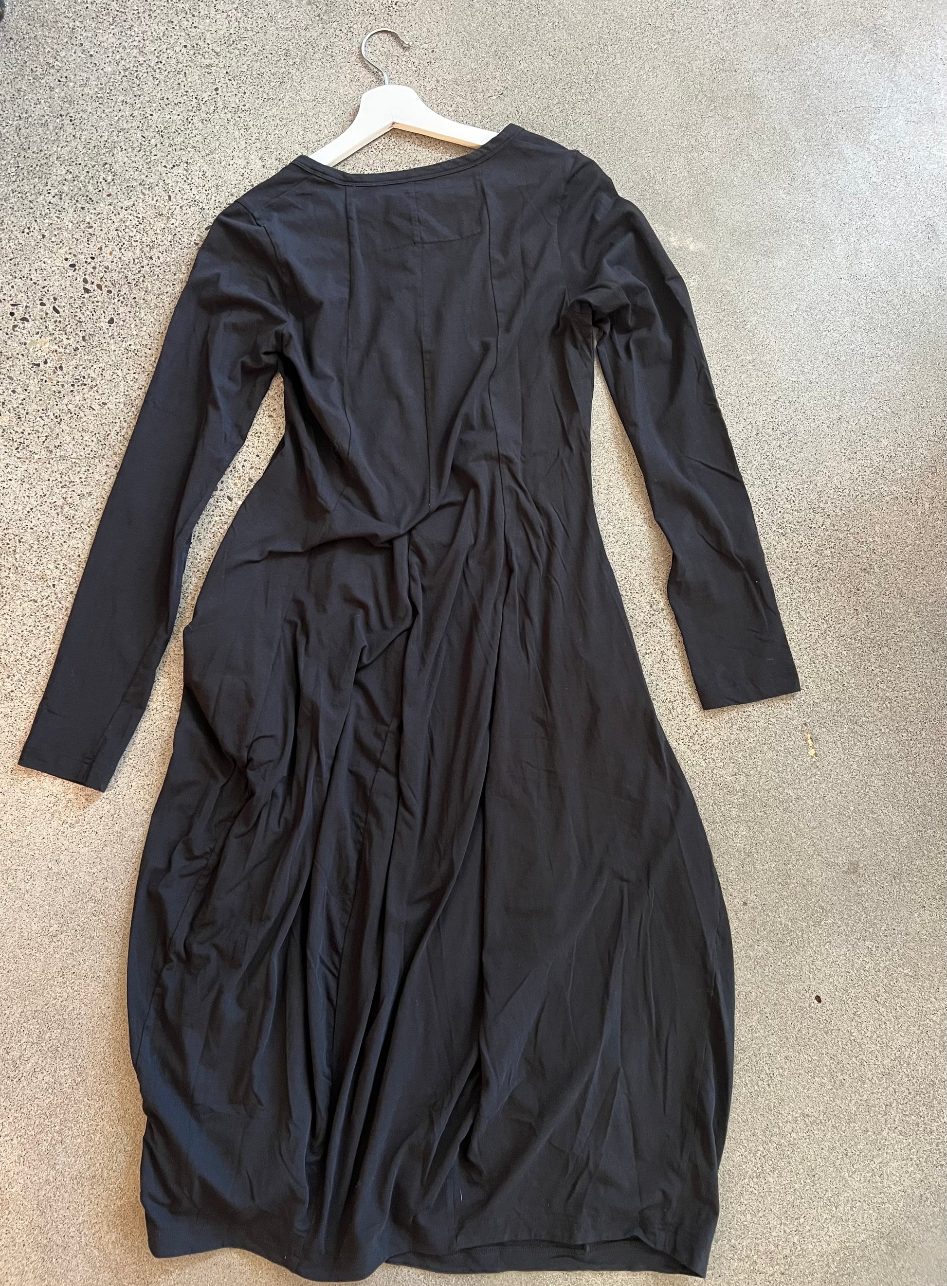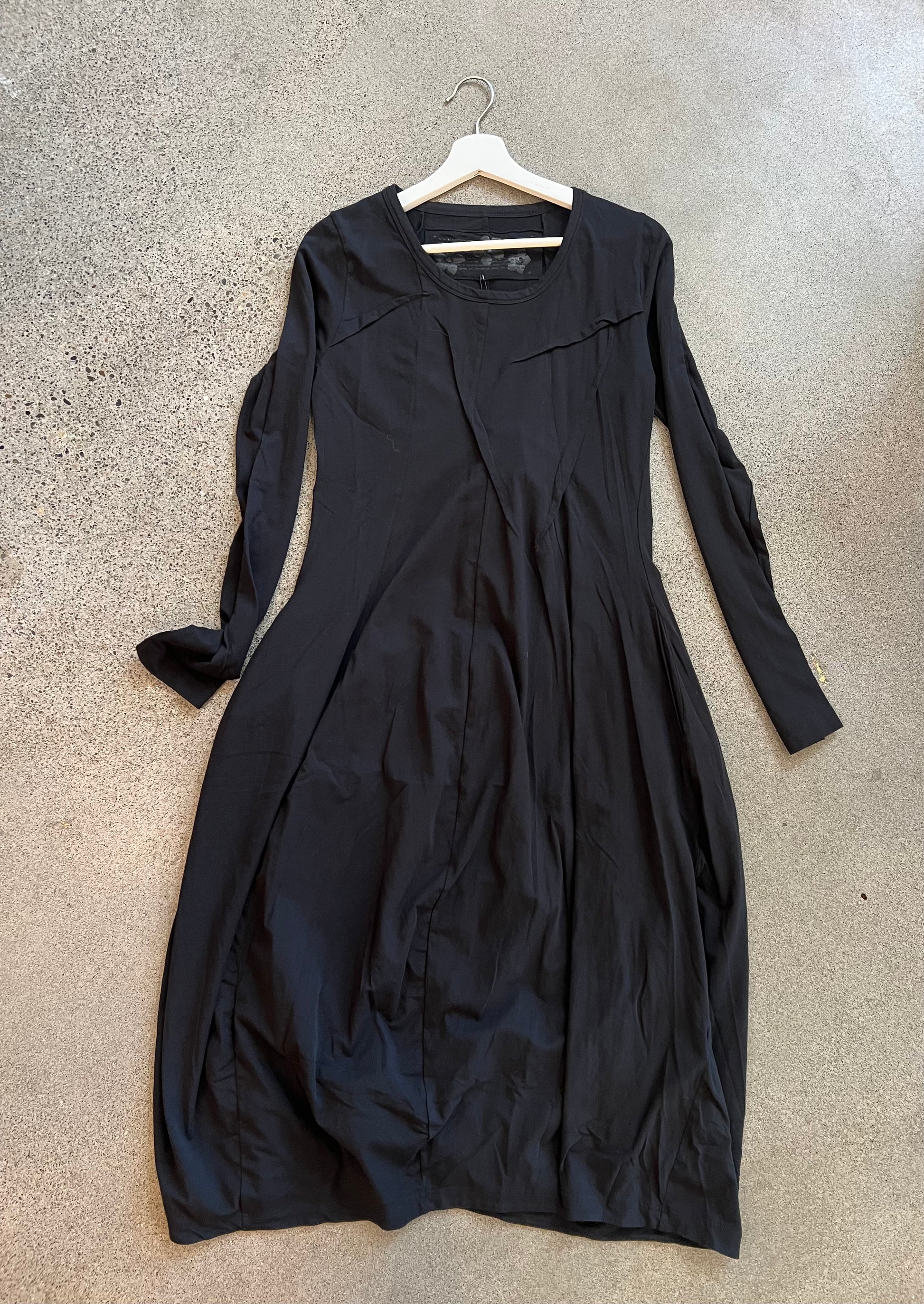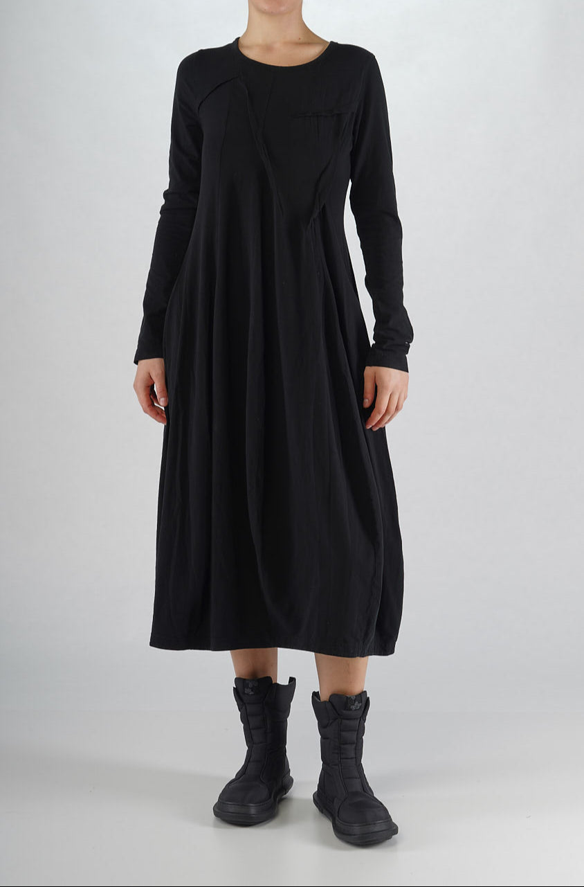 Simple long sleeve black dress with stitch detailing at front